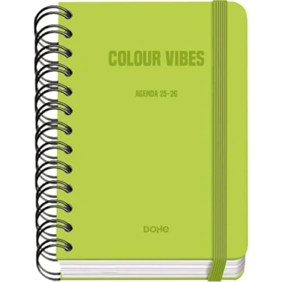 Dohe School Planner 2025 2026 Day per Page, A6 Size (12x17 cm), Spanish and English, Double Spiral Binding Elastic Band, Hard Cover, 4 Sticker Sheets COLOUR VIBES Lime