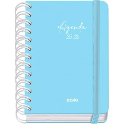 Dohe School Planner 2025 2026 Day per Page, A6 Size (12x17 cm), Spanish and English, Double Spiral Binding Elastic Band, Hard Cover, 4 Sticker Sheets SERENITY Blue