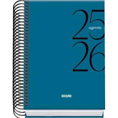 Dohe School Planner 2025 2026 Day per Page, A6 Size (12x17 cm), Spanish and English, September to June, Spiral Binding, Hard Cover SYSTEM Blue