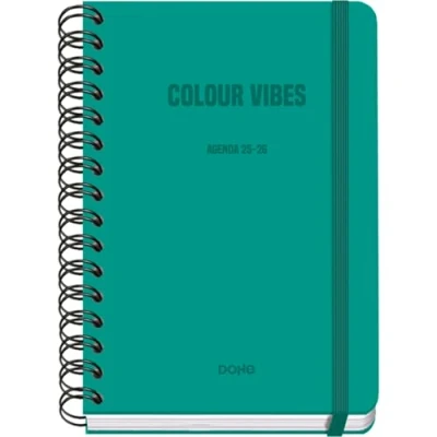 Dohe School Planner 2025 2026 Week to View, A5 Size (15x21 cm), Spanish and English, Double Spiral Binding Elastic Band, Hard Cover, 4 Sticker Sheets COLOUR VIBES Green