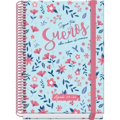 Dohe School Planner 2025 2026 Week to View, A5 Size (15x21 cm), Spanish and English, September June, Spiral Binding Elastic Band, Hard Cover, 4 Sticker Sheets PRIME Blossom