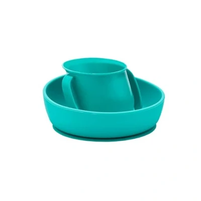 Doidy Trainer Cup and Weaning Bowl Set, for Baby 3months+ Mealtime (Cup + Bowl, Turquoise)