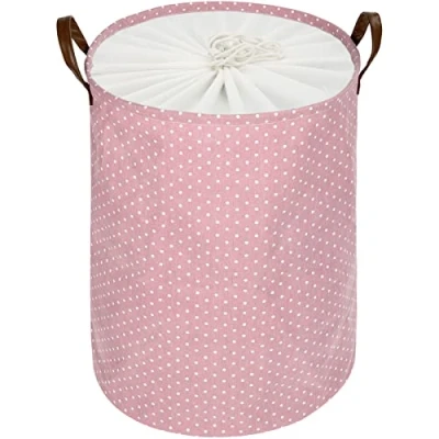 DOKEHOM 24 Inches Freestanding Laundry Basket with Lid, Collapsible Extra Large Drawstring Clothes Hamper Storage Handle (Pink, XL)