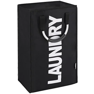 DOKEHOM 50L Collapsible Washing Laundry Basket Bag for Bedroom, Fabric (Black)