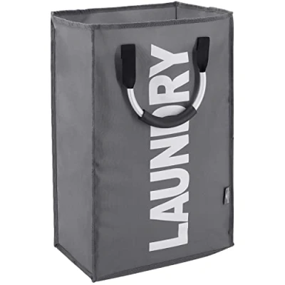 DOKEHOM 50L Collapsible Washing Laundry Basket Bag for Bedroom, Fabric (Dark Grey)