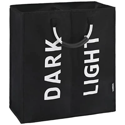 DOKEHOM 80L Large Collapsible Washing Laundry Basket Bag with 2 Sections for Bedroom, Fabric (Black)