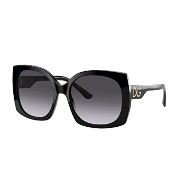 Dolce & Gabbana Sunglasses DG4385 501/8G Black Light Grey Gradient Black are a stunning square design with subtle upswept corners that creates a slight cat eye finish. The temples feature the DG logo.