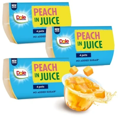 🥪 LUNCHBOX SNACKS: Enjoy the refreshing taste of high-quality fruit in a convenient individual pot wherever you are, at home, school, at the office or as a snack in your packed lunch. ✨ BULK PACK: The same great-tasting pots, now in a larger pack (3 packs of 4 x 113g)! Perfect for larger families or households wanting a multi-buy discount. We recommend storing them ambient in a cool, dry area and protect from freezing. ✔️ 100% NATURAL FRUIT: Dole fruit cups are a quick, delicious & healthy fruit snack or dessert for adults & kids, combining the highest quality fruit in 100% real fruit juice. 🍍 1 OF YOUR 5 A DAY: Dole fruit pots are a rich source of vitamin C & fibre & contain no added sugar, artificial preservatives, sweeteners or flavours. Vegetarian & vegan friendly, these are the perfect healthy snack for all - just peel the lid, & enjoy. 🌱 THIS FRUIT'S STORY: Dole's peaches are grown in sunny Greece and are hand-picked when perfectly ripe.