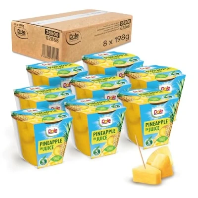 Dole Tropical Gold Pineapple in Juice Fruit Pots 8 x 198g, Fresh Chunks, Healthy Snack, No Added Sugar, Perfect for Breakfast & Dessert or Adding to Recipes