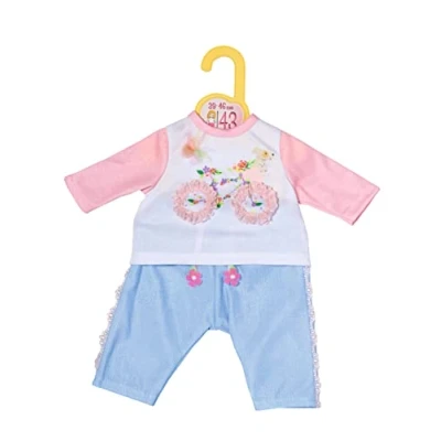 Doll fashion can be used for many dolls: thanks to the casual cut, BABY born, Baby Annabell and other dolls measuring 39-46 cm can happily swap clothes back and forth. Lovingly designed: the bike on the long sleeve comes with a lot of flower power. The sleeves of the white long-sleeved shirt, as well as the collar, are in pink. The jeans look trousers have a playful border on the side The ribbons with flower end on the waistband complete the floral outfit., Manufacturer: Dolly Moda