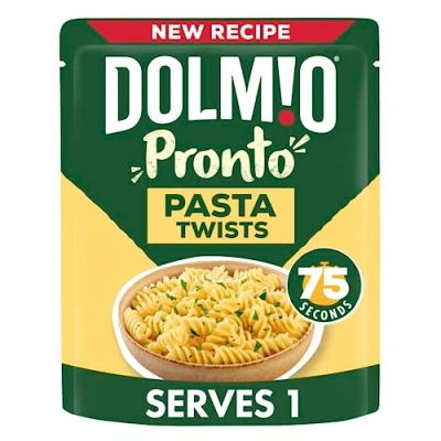 Combine with a Dolmio tomato or carbonara sauce to create a delicious pasta dish Microwaves in just 75 seconds for a quick and tasty Italian meal Dolmio Pronto Pasta Twists is suitable for vegans Nutritious with no artificial colours, flavours or preservatives