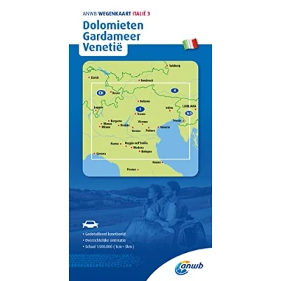 Dolomites / Lake Garda Venice road map & panoramic map: Lago di...