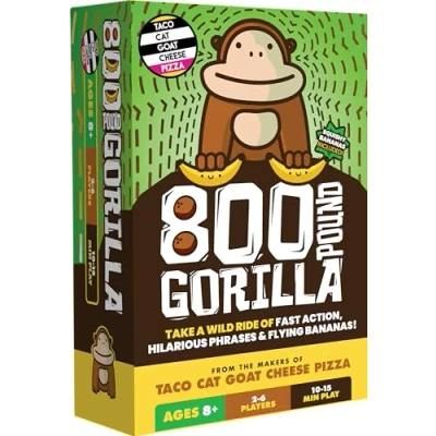From the makers of Taco Cat Goat Cheese Pizza 800 Pound Gorilla is the optimal fun and easy-to-learn game that the whole family will enjoy 2-6 players will be taken on a ride of fast-paced action, hilarious phrases, and bananas flying left and right Race your family and friends to collect the most banana points to win With similar mechanics to Taco Cat Goat Cheese Pizza, and artwork featuring familiar characters; It is sure to be a hit, Manufacturer: Dolphin Hat Games