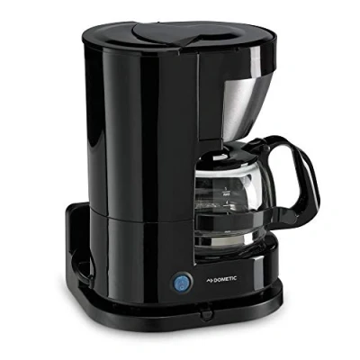 Five-cup coffee maker, specially designed for mobile use Swing filter for easy operation Integrated transport securing device for the glass pot Warming plate with thermostat Fixing kit for wall or desk mounting included