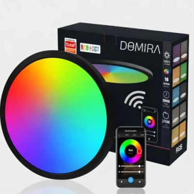 DOMIRA Smart LED Ceiling Light 24W Ø30cm, RGB + 2700K 6500K Adjustable White, 2000LM, Remote/App Control, Alexa & Google Compatible, Modern Flush Mount ABS+PP (Without Remote)