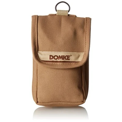 Water repellant canvas pouch Top flap uses a hook and loop to close the pouch. Accepts a Domke 1-compartment mini-insert Hook and loop attachment for straps, tripods or stands O-ring for attachment to clips