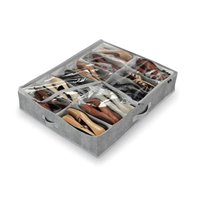 AmazonIdeal for storing under the bed, over the wardrobe or in service spaces Equipped with three sides zipper and practical compartments, it is convenient to store up to 12 pairs of shoes The top is transparent and allows easy identification of contents