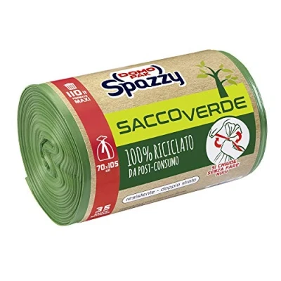 Domopak Spazzy Sacchi Nettezza Saccoverde Wraps & Close 100% Recycled by Post Consumption Condominiale 110 Lt Green 1380 gr
