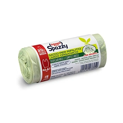 Household 20 liters - with handles - 42 x 67 cm Organic wet waste recycling bags. Easy to close thanks to practical built-in handles Products based on renewable plant raw materials Durable and compostable 100% biodegradable - compostable