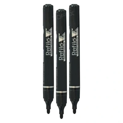 DOMPerma Permanent Marker Pens, BLACK, Bullet Tip (2.0mm), Pack of 3, Waterproof UV resistant Ink, Marks on Most Surfaces, iZOFAX Black Ball Pen