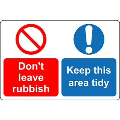 Don't leave rubbish keep this area tidy Safety sign 1mm Plastic sign Digitally printed for extra durability Drill and screw in position or use double sided tape to mount onto suitable surface.