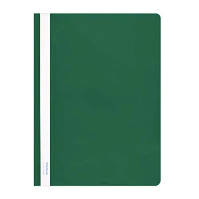 File folders made of durable PVC, hard - pack of 10 Transparent front, hard crystal clear cover sheet - PP thickness: 150 µm Coloured back - Thickness: 160 µm Holds approx. 200 sheets (2 cm) for A4 Not for stapling, metal hook-in folder. Interchangeable, edging tape that can be written on both sides. Plastic file folder model 1705001PL-06 Donau, dimensions: 230 x 310 mm, A4, colour: green. Perfect for office and school