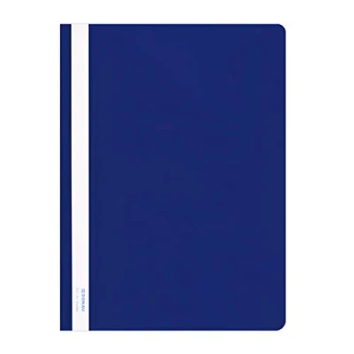 File folders made of durable PVC, hard - pack of 10 Transparent front, hard crystal clear cover sheet - PP thickness: 150 µm Coloured back - Thickness: 160 µm Holds approx. 200 sheets (2 cm) for A4 Not for stapling, metal hook-in folder. Interchangeable, edging tape that can be written on both sides. Plastic file folder model 1705001PL-10 Donau, dimensions: 230 x 310 mm, A4, colour: blue. Perfect for office and school