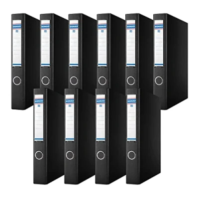 DONAU 3934001PL 01 Ring Binder/Black 4 D Mechanism 30 mm DIN A4 Binder Cardboard/Plastic Made of 1.9 Thick Cardboard with Eco PP 100µ Pack 10