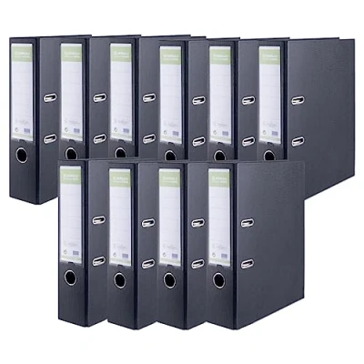 DONAU Binder Lever Arch File/ Folder PREMIUM MAXI FSC / Pack of 10 - 10 Pieces / Wide / DIN A4 8 cm - 80 mm / Black / Plastic cover PP / Cardboard Paper / Reinforcement tape / Made in the EU the FSC certification High quality lever with pressure loading. Interchangeable, double-sided back label Reinforced finger hole High-quality cardboard folder made of 2.3 mm thick cardboard with a gram density of 1290 GSM, A4/80mm Coated on both sides with ecological polypropylene film (100 µm)/plastic cover PP/paper with the structure of a linen cloth
