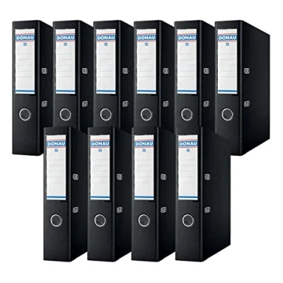 DONAU Binder Lever Arch File/Folder Wide/Pack of 10 / DIN A4 7,5 cm Pieces/Black/Plastic Cover PP/Cardboard Paper