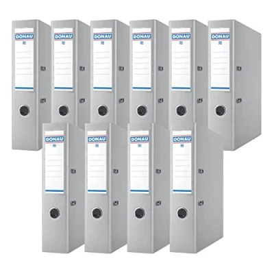 Donau Binder Lever Arch File/Folder Wide/Pack of 10 / DIN A4 7,5 cm Pieces/Grey/Plastic Cover PP/Cardboard Paper