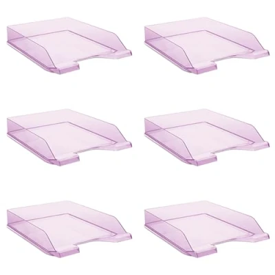 DONAU Letter Tray Standard Transparent Purple/Pack of 6 A4 / Modern and Stackable Tray/Transparent Crystal Clear/Desk Tray/Polystyrene