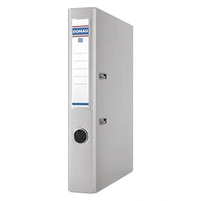 Donau 3950001PL-13 Master Standard Folder Narrow / DIN A4 / 5 cm - 50 mm / Pack of 25 - 25 Pieces Colour: grey High quality pressure lever. Interchangeable, double-sided back label, reinforced finger hole High-quality folder made of 2.1 mm thick cardboard with a gram-density of 1290 g/m². Folder/office folder/letter folder/spine width: 50 mm, dimensions: 50 x 320 x 285 mm, colour: grey Coated on both sides with ecological polypropylene film (100 µm), plastic cover PP/paper with the structure of a linen cloth Colour: yellow. With the green dot - participation in the recycling and recycling system resulting from the provisions of Polish and EU law