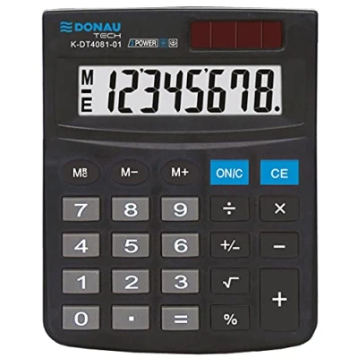 DONAU Tech K DT4081 01 8 Digit Calculator Root Function 134 x 104 17 mm Black with Display Dual Power Solar Battery Operated Compact Design