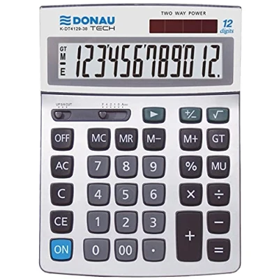 DONAU TECH/K DT4129 38 Desktop Calculator 12 Digit Root Function 210 x 154 34 mm Colour: Silver/Calculator with Display/Dual Power Solar Battery Operated/Compact Design