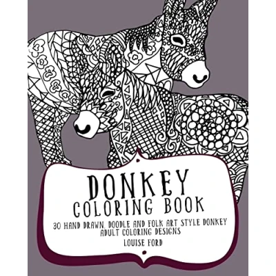 Donkey Coloring Book: 30 Hand Drawn, Doodle and Folk Art Style Adult Designs: Volume 1 (Animal Books)