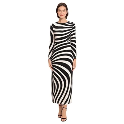 Donna Morgan Women's Striped Long Sleeve Easy Body Maxi Dress, Ivory/Black, 12