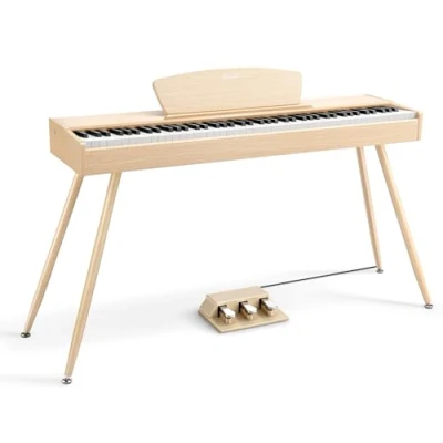 Donner DDP 80 Digital Piano Keyboard 88 Keys Weighted, Hammer Action II, Home Electric Full Size with Stand, Triple Pedal, MIDI Connecting and Headphone Interface, Light Wood Color