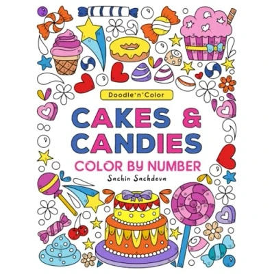 Doodle n Color Cakes & Candies: by Number Coloring Book for Adults, Women and Teens featuring Sweet Treats, Food Desserts Stress relief Relaxation