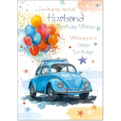 doodlecards Husband Birthday Card Volkswagen Beetle Large A4 Size with Plain Envelope