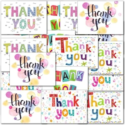 THANK YOU MULTIPACK ⭐Pack of 20 high quality Thankyou note cards, Notelets - 5 Different Designs ⭐ Professionally printed ⭐ Supplied with white envelopes⭐ SIZE ⭐A6 Size Cards 15 x 10.5cm.⭐ EXTRA THICK CARD ⭐ Printed on high quality 300gsm card 100% Recyclable Contempory Matt finish. - not your usual flimsy note paper⭐ DESIGNS ⭐4 cards of each design. Therefore pack consists of 5 different cards as shown. Boys & Girls, Kids & Children's. Ideal for Thank You Teacher, Teaching Assistant.⭐ MESSAGE INSIDE CARD⭐ All 20 Cards are blank inside for your own message ⭐ UK MANUFACTURED ⭐