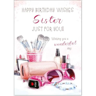 doodlecards Sister Birthday Card Make up Medium Size with Plain Envelope