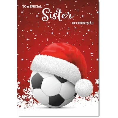 DOODLECARDS ⭐ Sister Christmas Card Santa Hat Football with Red Sky Medium Size Christmas Card for Sister with Plain Envelope MESSAGE INSIDE ⭐ Please see the second image for any words inside the card. QUALITY ⭐ Printed in the UK on Luxury Italian 350gsm Board with a Contempory Matt finish. SIZE ⭐ Medium Size Card 22 x 15cm. Posts with standard Letter post. ECO FRIENDLY ⭐ 100% Recyclable, FSC certified paper. RECIPIENTS ⭐ Matching Cards available for other recipients - same size and quality. DOODLECARDS ⭐ Include 'doodlecards' in your search for the perfect Greeting Card.