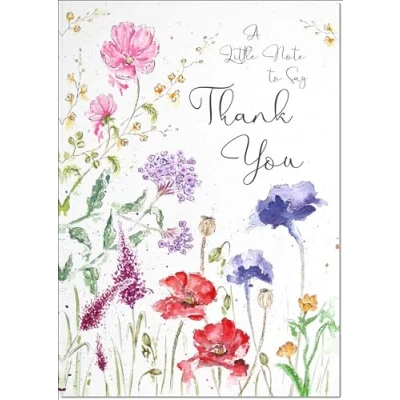 doodlecards Thank You Card Wildflowers Spring Flowers Large A4 Size with Plain Envelope