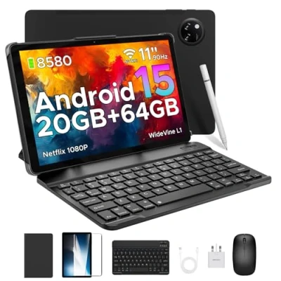 Amazon 【All-in-one Package】When you buy DOOGEE TAB A9+ tablet with keyboard, you get more than just a tablet; it's an all-in-one package that includes all the accessories you need to protect and maintain your device. In addition to the tablet, pressure-sensitive pen, mouse and keyboard, it also includes a universal power adapter, data cable, and business leather case. 【2025 Latest Android 15 + Face ID】🔥🔥 DOOGEE TAB A9+ fire tablet is equipped with the latest Android 15 system, with Face ID, customizable lock interface, more advanced permission management and privacy functions, improved system security, and improved system stability. This android tablets operates smoothly, allowing you to enjoy a silky experience. (without SIM card) 【11-inch + Eye Protection & Widevine L1+Netflix+90Hz】🌟🌟DOOGEE TAB A9+ android 15 tablet has an ultra-high-resolution 11-inch display with 1280 x 800 pixels, up to 83.3% screen-to-body ratio and low blue light eye protection mode, providing a comfortable visual experience for work and entertainment. Widevine L1 certification allows you to watch Netflix, YouTube, HBO and Prime Video in true 1080P resolution. The 90Hz refresh rate ensures smooth and responsive performance on this tablet with pen. 【8580mAh Large Battery + 7.9mm】🔋🔋 The tablet with keyboard is equipped with a 8580mAh large battery, with a thickness of only 7.9mm, a small body with great energy, you can easily work or play for a whole day! DOOGEE TAB A9+ tablet android provides up to 11 hours of video playback time, 26 hours of music appreciation time, and 8 hours of gaming time. The Android tablet has plenty of power, making battery anxiety a thing of the past. 【 T7200 Octa Core & 20GB + 64GB/2TB LPDDR4X】💾 💾 This cheap tablets uses Unisoc T7200 octa-core chip, which has better performance. 20GB(4+16)RAM and 64GB(expandable to 2TB)ROM with LPDDR4X technology, running smoother and faster, can store a lot of data, files and media content, etc. You can download and store your favorite content at will, and say goodbye to the trouble of insufficient memory.