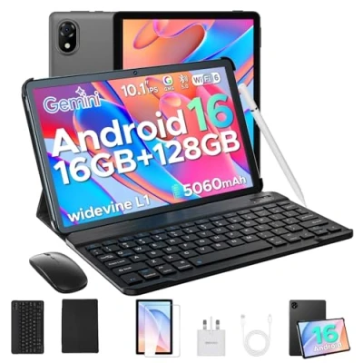 【Newest Android 16 AI Tablet 10 Inch】Experience the cutting edge with the latest Android 16 system, engineered to redefine your tablet interaction. This doogee u10 tablet with keyboard delivers a transformative performance leap, enabling apps to launch up to 30% faster, and system operations to feel 20% smoother than its predecessor. Beyond speed, Android 16 introduces an advanced gemini AI privacy guard and more intuitive controls, offering a smarter, more secure, and seamlessly responsive user experience that adapts to you. 【Multifunctional Android Tablet】DOOGEE U10 android 16 tablet is your all-in-one productivity and creativity studio. The bundle includes a full-size keyboard for comfortable typing, a mouse for precise navigation, and a sensitive stylus pen for sketching, note-taking, or detailed editing.With a durable case, providing comprehensive protection and making it the complete mobile kit for work, study, and play. 【16GB RAM + 128GB ROM/TF 2TB Expansion】Powered by a robust 16GB of RAM (4GB physical + 12GB expandable), this android tablet handles multitasking and demanding applications with exceptional ease. Store all your essentials and more with 128GB of internal storage, and expand it massively up to an additional 2TB via a Micro SD card. This combination ensures you never have to compromise on performance or space for your apps, media, and files. 【5060mAh Battery + WIFI 6】Stay powered and connected all day long. The large 5060mAh battery, optimized by Android 16's intelligent power management, provides extended usage for this 10 inch tablet device. Coupled with advanced Wi-Fi 6 technology, enjoy faster speeds, broader coverage on both 2.4GHz and 5GHz bands, lower latency, and more secure connections for uninterrupted streaming, browsing, and downloading. 【5MP/8MP Camera + 1217 BOX Speaker】This doogee tablet can capture life’s moments clearly with the 8MP rear camera and 5MP front-facing camera, supported by a flash for various lighting conditions. For entertainment, the integrated 1217 BOX speaker delivers an immersive audio experience with rich bass and crystal-clear highs, making every video, game, and song more engaging. 【10-Inch IPS Display + Widevine L1】This doogee u10 android 16 tablet enjoy vibrant visuals on a sharp 10 inch IPS display that offers wide viewing angles and vivid colors. Certified with Widevine L1 DRM, this tablet allows you to stream your favorite movies, shows, and content from popular platforms in the highest available resolution, including full HD, for a premium viewing experience.