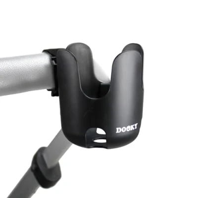 Dooky Cup Holder for Pram/ Stroller/ Pushchair with Anti Slip Rubber Padded Layer Extra Stability, Universal Fit, Adjustable Velcro Strap, 360 Degree Flexibility, BPA Free, Unbreakable, Black