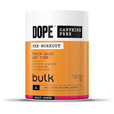 Dope Caffeine Free Pre Workout Powder Fruit Punch 510g 30 Servings Stimulant 3.2g Beta Alanine 3g Creatine Citrulline & AAKG Blend Vitamin B6 Supports Power, Endurance Recovery