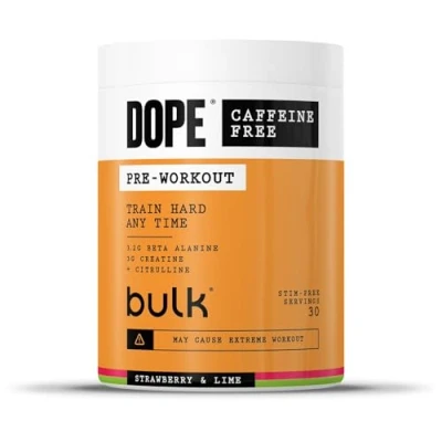 Dope Caffeine Free Pre Workout Powder Strawberry Lime 510g 30 Servings Stimulant 3.2g Beta Alanine 3g Creatine Citrulline AAKG Blend Vitamin B6 Power, Endurance Recovery