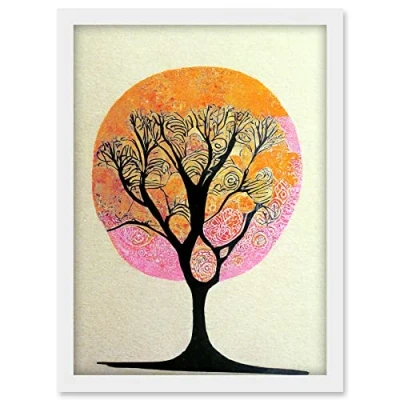 Doppelganger33 LTD Abstract Illustration Enchanted Quirky Tranquil Linocut Tree Silhouette Artwork Framed A3 Wall Art Print